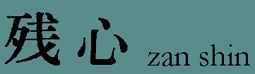 | The direct translation for the Kanji characters of the word zanshin would be "the body remains" or "the mind remains". After executing a technique, a state of alertness or awareness, should remain in us. It might look like a brief cause, a moment of stillness to others, but to the student it is a condition of calm readiness. It is not contemplation, nor is it a feeling of 'basking" in the perfection or effectiveness of the last technique. Zanshin is a functional state, based on the need for self-protection. A period of carelessness after a successfully executed technique may create the opening (suki) needed by an opponent to strike. Zanshin should act as a sensorial shield. |